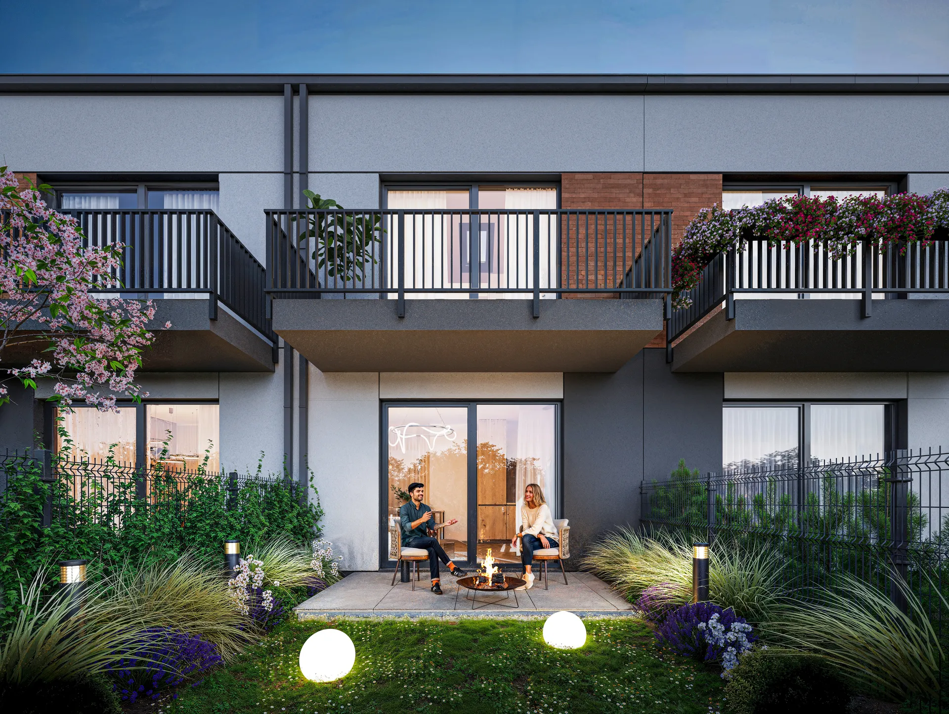 Każde mieszkanie posiada ogród idealny do odpoczynku i spędzania czasu na świeżym powietrzu.