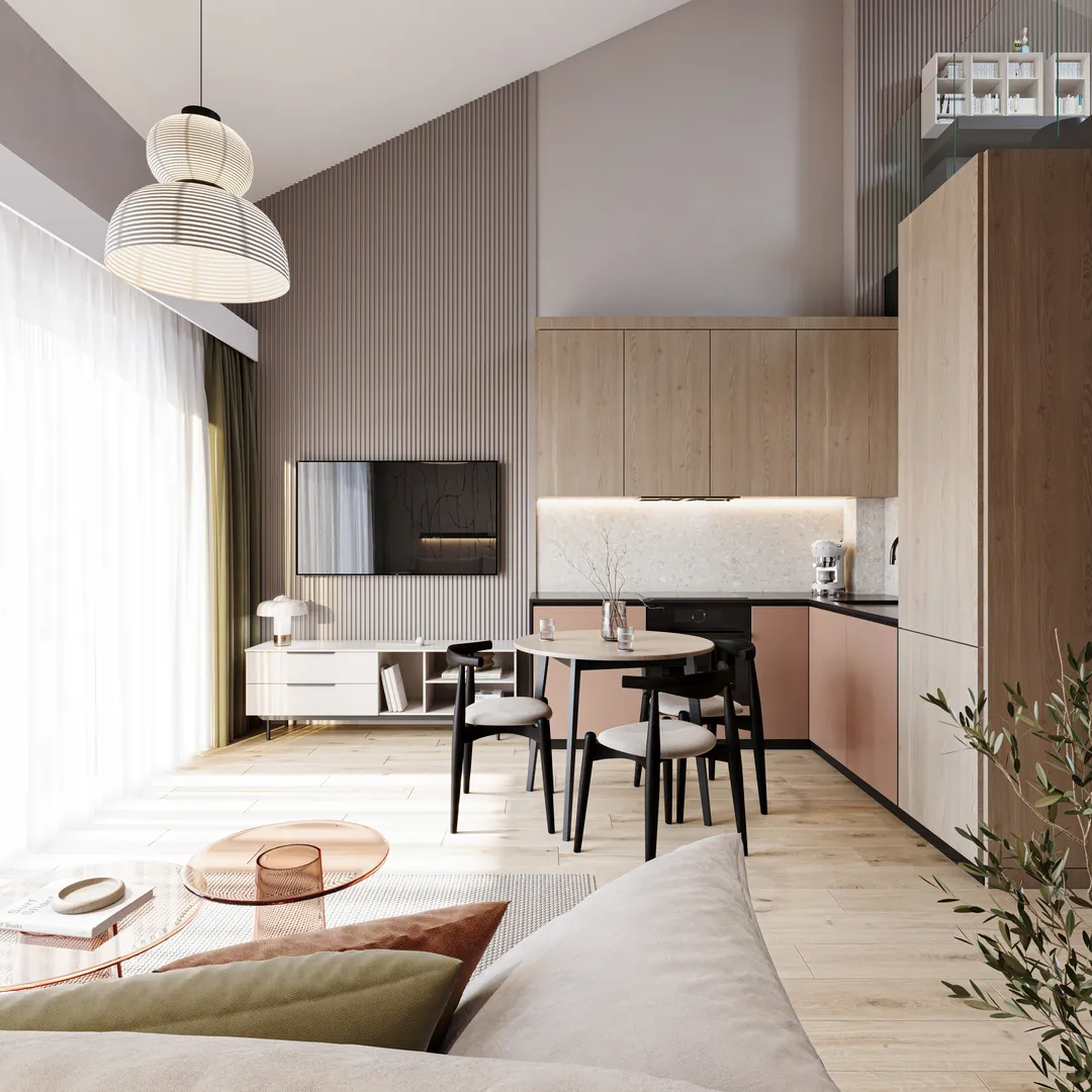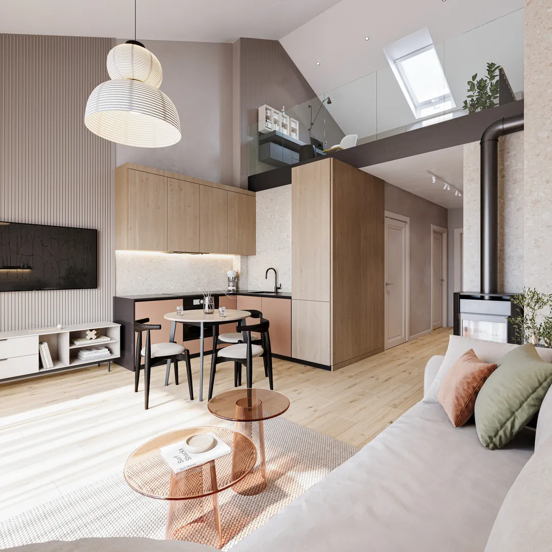 Apartamenty 50 m² na piętrze posiadają 10 m² antresolę, która nadaje loftowego wyglądu. Może być ona zagospodarowana jako prywatna sypialnia, biuro bądź pokój dla dziecka. To dodatkowa przestrzeń na oddzielnej kondygnacji, która pozwoli stworzyć prywatną przestrzeń dla Novych Mieszkańców.
